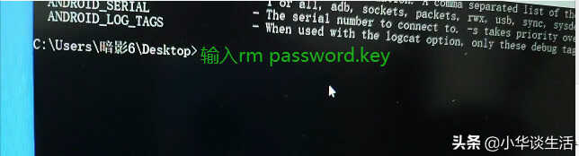 6、到了这一步就差最后一个命令就可以删除手机里面的手机锁屏了,第三个命令输入“rm password.key”点击回车,电脑反馈一个“#”的符号就说明手机里面的锁屏密码已经删除了。