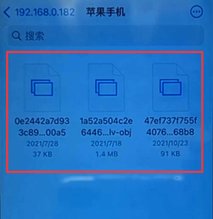 在这个共享服务器里,我们就可以看到我们第一步创建的共享文件夹“苹果手机”。我们打开这个“苹果手机”文件夹,就可以看到这3张图片。