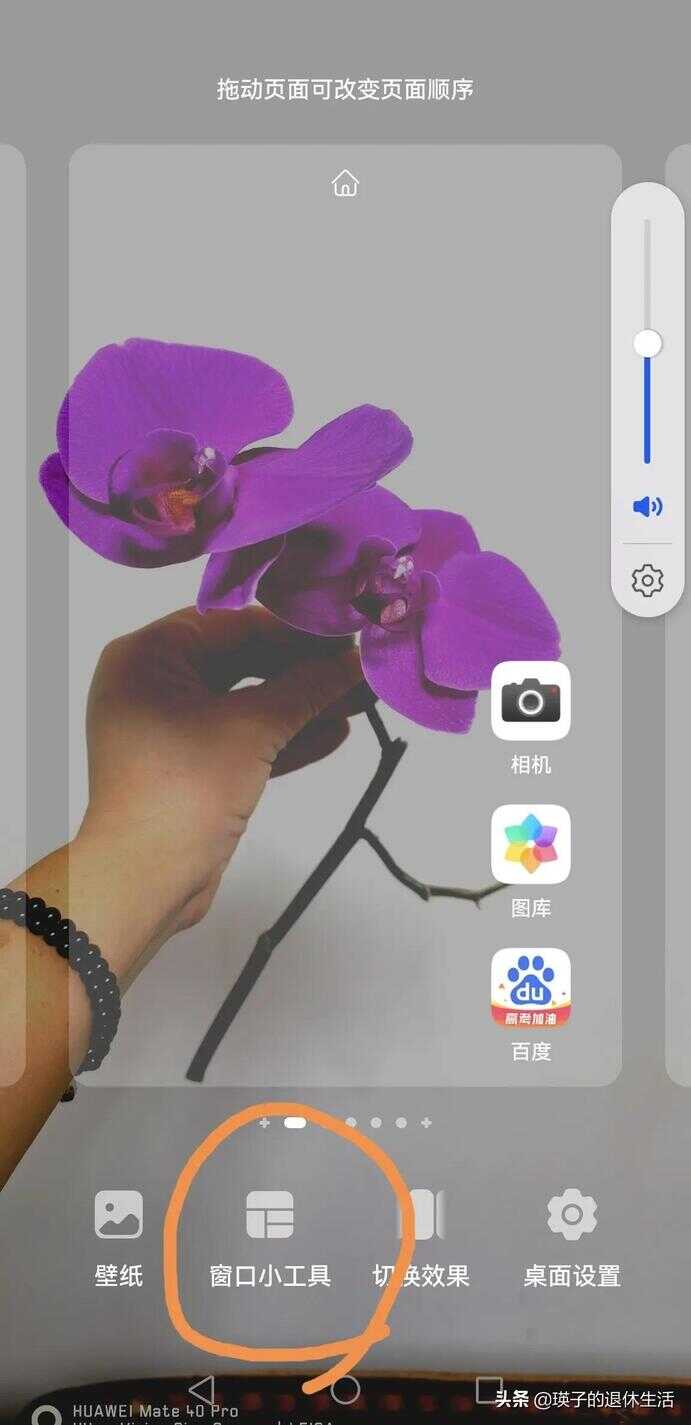 在主屏幕用拇指和食指捏合,进入桌面管理(如下图),屏幕下方就出现了4个小组件。