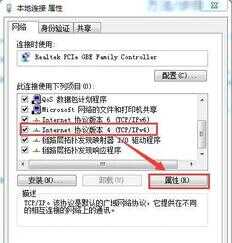 3、在网络选项中选择TCP/IPv4,点击属性。
