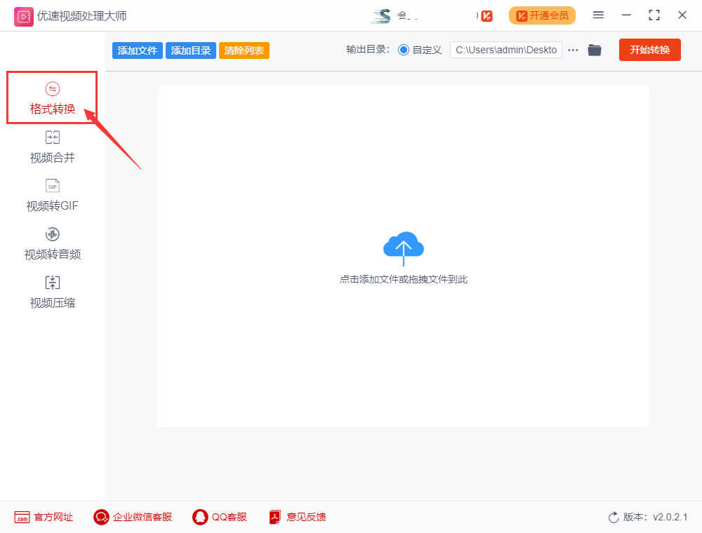 步骤1,在电脑上下载好“优速视频处理大师”工具软件,然后安装打开使用。点击左边第一个【格式转换】功能,这里支持十几种视频格式转换成mp4。