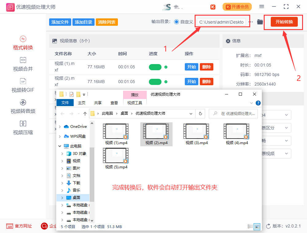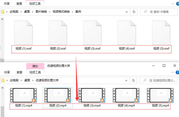 步骤4,从上面的转换结果可以看到,软件成功的将多个mxf视频转换成了mp4格式。