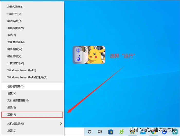 步骤1.右键桌面左下角的【开始】微软图标后点击“运行”;