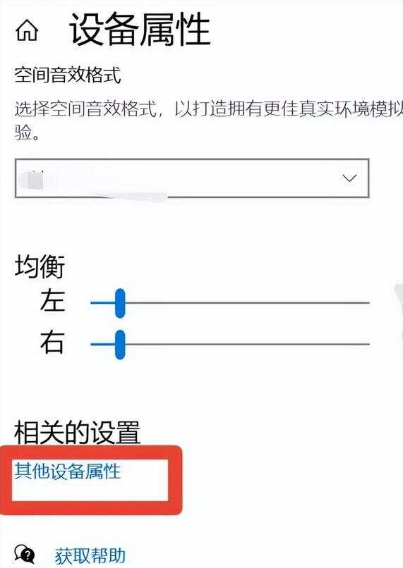 4、在右侧的声音选项中,找到设备属性点击打开。