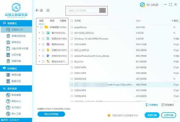 不论文件删除后因上述哪种原因导致回收站没有文件,只要文件未覆盖都可以尝试借助专业的数据恢复软件——云骑士数据恢复软件轻松找回。操作方法很简单,我们可以回忆一下源文件是在哪个盘存储着的,然后停止对丢失文件磁盘分区进行写入操作,尝试用云骑士数据恢复软件扫描,找到文件进行恢复即可。