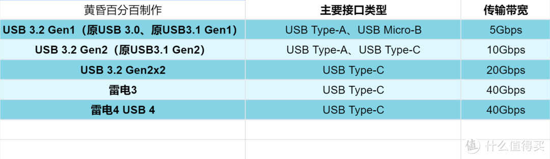 ▲目前市面上主流的移动设备传输协议分别是有USB-IF组织主导的USB协议以及intel主导的雷电协议,当然,雷电3与雷电4协议采用的都是USB Type-C接口并且兼容USB协议,所以为了便于理解,讨论移动固态硬盘时,大家只需要重点关注传输带宽即可。