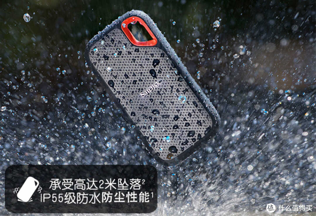 ▲其橡胶外壳可以有效吸收冲击力,使闪迪E81可承受2米坠落并具有IP55的防水防尘等级。