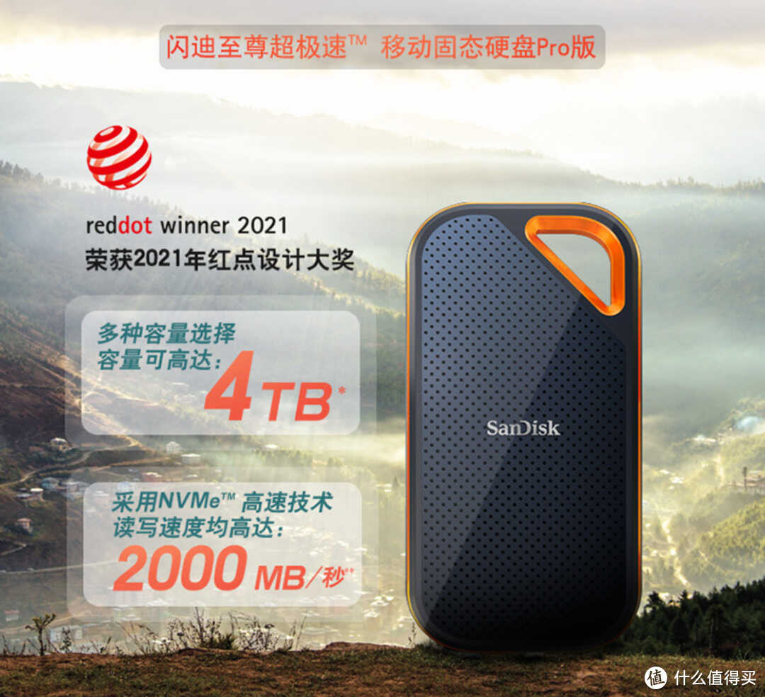 ▲首先依旧推荐获得2021年红点设计大奖的闪迪 E81 至尊超极速Pro 升级版,从名字上就可以知道,这是闪迪E61 至尊极速卓越版的升级强化型,速度由E61的读取1050MB/s、写入1000MB/s升级到了读写速度均为2000MB/s。