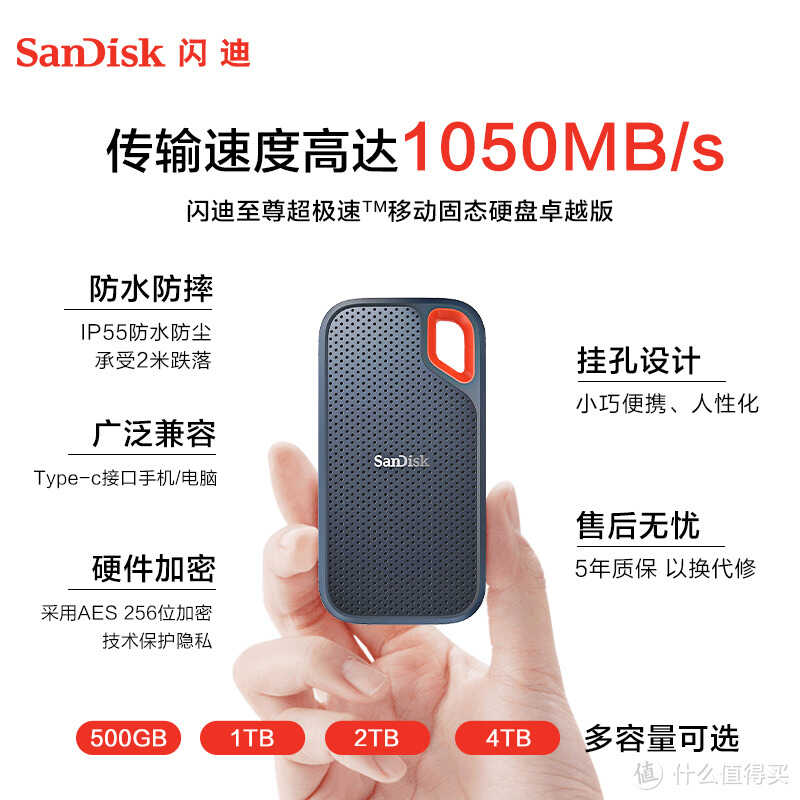 ▲闪迪 E81最大容量为4TB,支持五年质保。