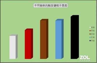 再来看触发键程,青轴的触发键程最高约为2.2mm,红轴和茶轴处于中间水准约为2mm,至于黑轴则为1.5mm,而银轴则更为吓人的1.2mm。