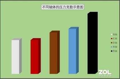 先来看轴体的压力克数,根据官方提供的几个常规轴体的数值,红轴和银轴的压力克数相同,均为45cN左右;茶轴则为55cN,至于青轴为60cN,更为夸张的黑轴高达80cN。