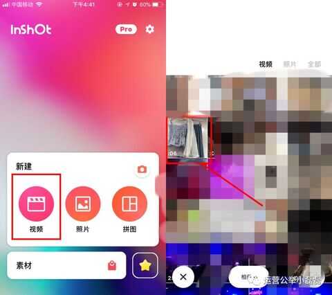 在手机里将软件打开后,会出现好几个选项,点击“视频”后会直接跳到相册页面,选定自己需要打码的视频。