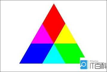 红、绿、蓝三盏灯的叠加情况,中心三色最亮的叠加区为白色,加法混合的特点:越叠加越明亮。