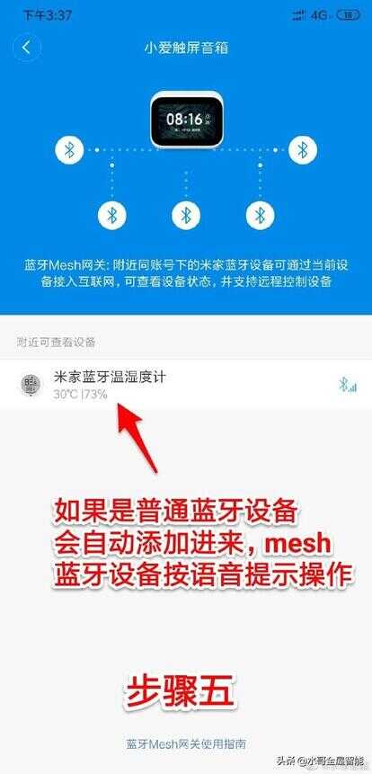 之前在米家APP的小爱触屏音箱设置界面里边有看到蓝牙网关,但是不知道怎么把蓝牙设备添加进去,普通的mesh蓝牙网关,比如米家床头灯,会自动把周围的蓝牙设备添加进去,当时还以为说这个固件还不完善,这个功能暂时还不可用呢,昨天我才偶然之间发现,原来是已经可以用了,只是说这个添加蓝牙设备的操作要进入到小爱app里面去操作才行。