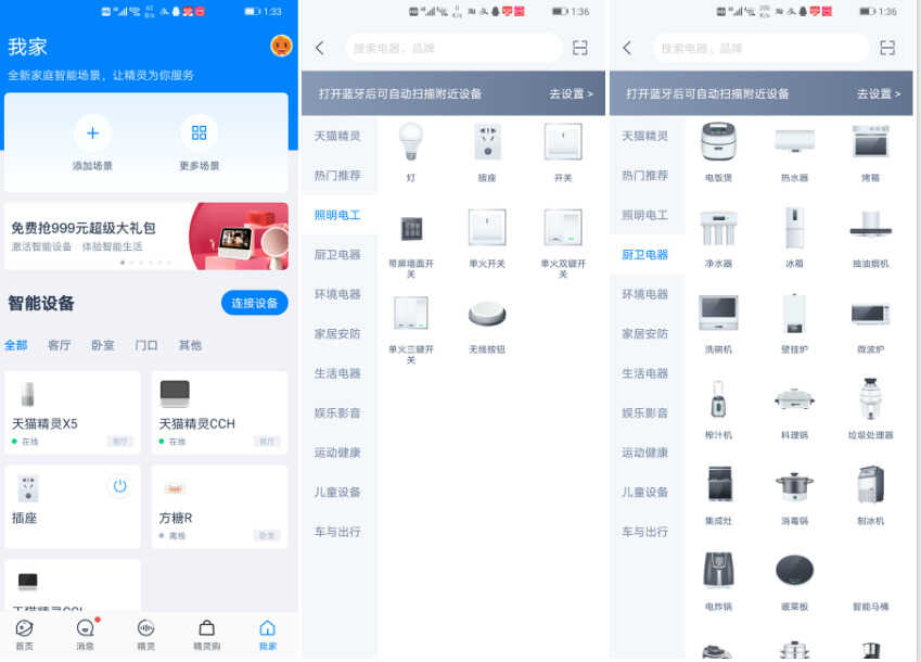 在登录天猫精灵APP并且绑定了淘宝等账号之后,天猫精灵X5能实现的功能就变得非常丰富了,你可以使用“语音购物”,空间感知功能还可以自动分辨出离你最近的天猫精灵温馨回答,避免出现多台音箱混乱的尴尬。