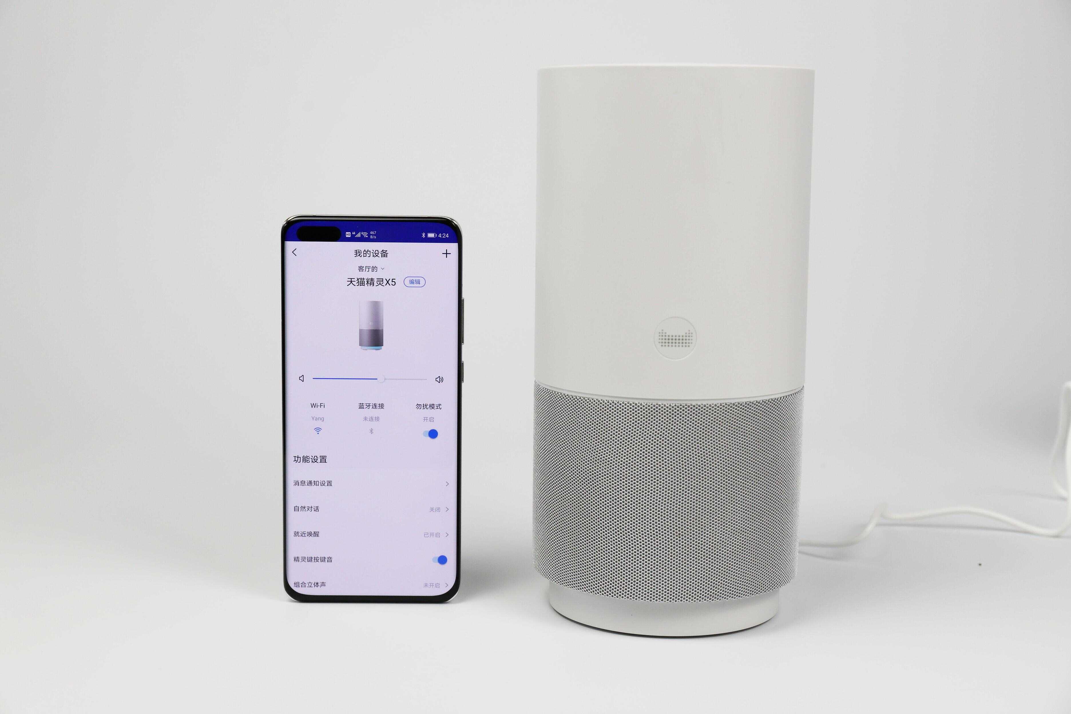 整体的设计风格上,天猫精灵X5的设计让人感到舒适,白色与银色的碰撞搭配也比较协调,这样一来,无论是摆放在客厅还是卧室,都不会显得太过于突兀,一张漂亮的脸蛋,总是能够给人愉悦的印象。