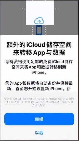 通过这种方法迁移数据,就算iCloud空间不足也能临时借用,管够。需要将旧设备升级到ios 15,当iCloud空间不足时,也可以通过临时的iCloud备份完成迁移。然后用新iPhone,再从iCloud恢复备份就好。苹果特地强调,临时借用的这部分储存空间是免费的,21天内都有效。实操步骤如下: