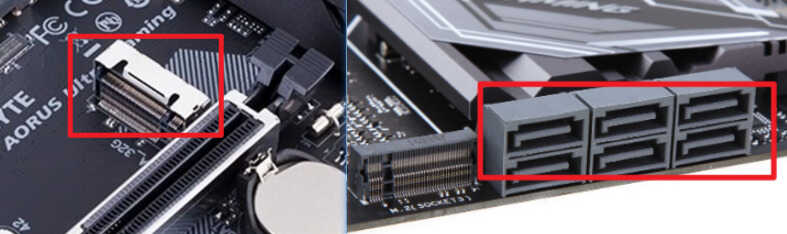 现在大多数的主板,都会有两种硬盘接口,一种是M.2,另一种是SATA。(M.2接口多以固态硬盘为主,SATA接口多以机械硬盘为主)
