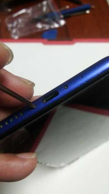 4、用配送的三角薄卡将后盖与机身分离。四用顺着卡槽位逐渐分离。