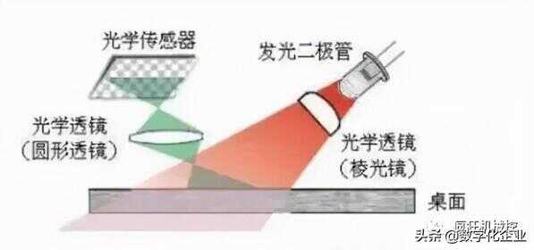 光电鼠标(也叫“光学鼠标”)通过发光二极管和光电二极管来检测鼠标对于一个表面的相对运动,它不像机械鼠标一样通过鼠标球的旋转驱动两个互相垂直轴的转动来获得鼠标移动的位置。