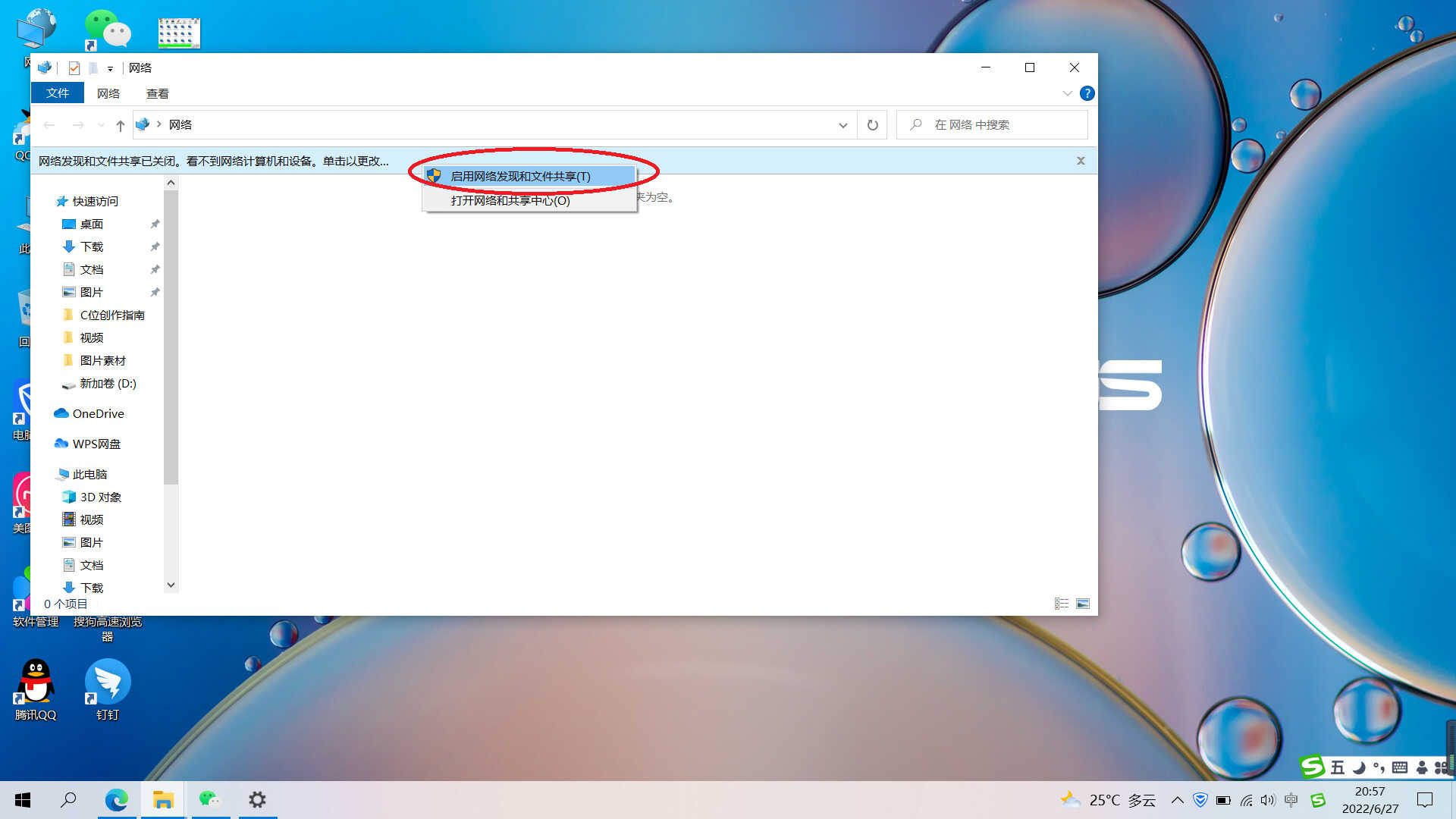 双击打开“网络”选项,如果网络发现功能关闭,那么单击窗口上方点击“启用网络发现和文件共享”,局域网内所有计算机都需要开启网络发现。