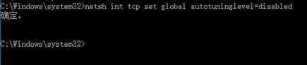 3、输入netsh int tcp set global autotuninglevel=disabled按enter,如下图所示: