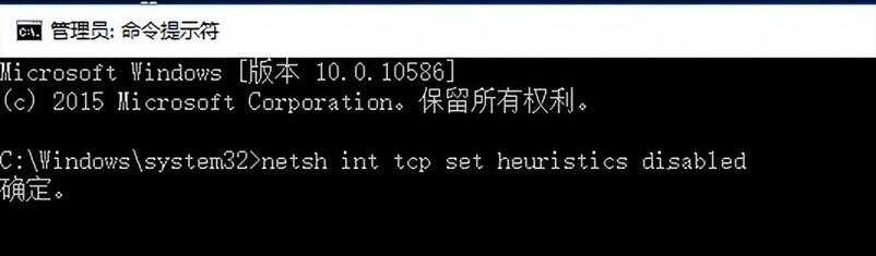 2、输入netsh int tcp set heuristics disabled按enter,如下图所示:
