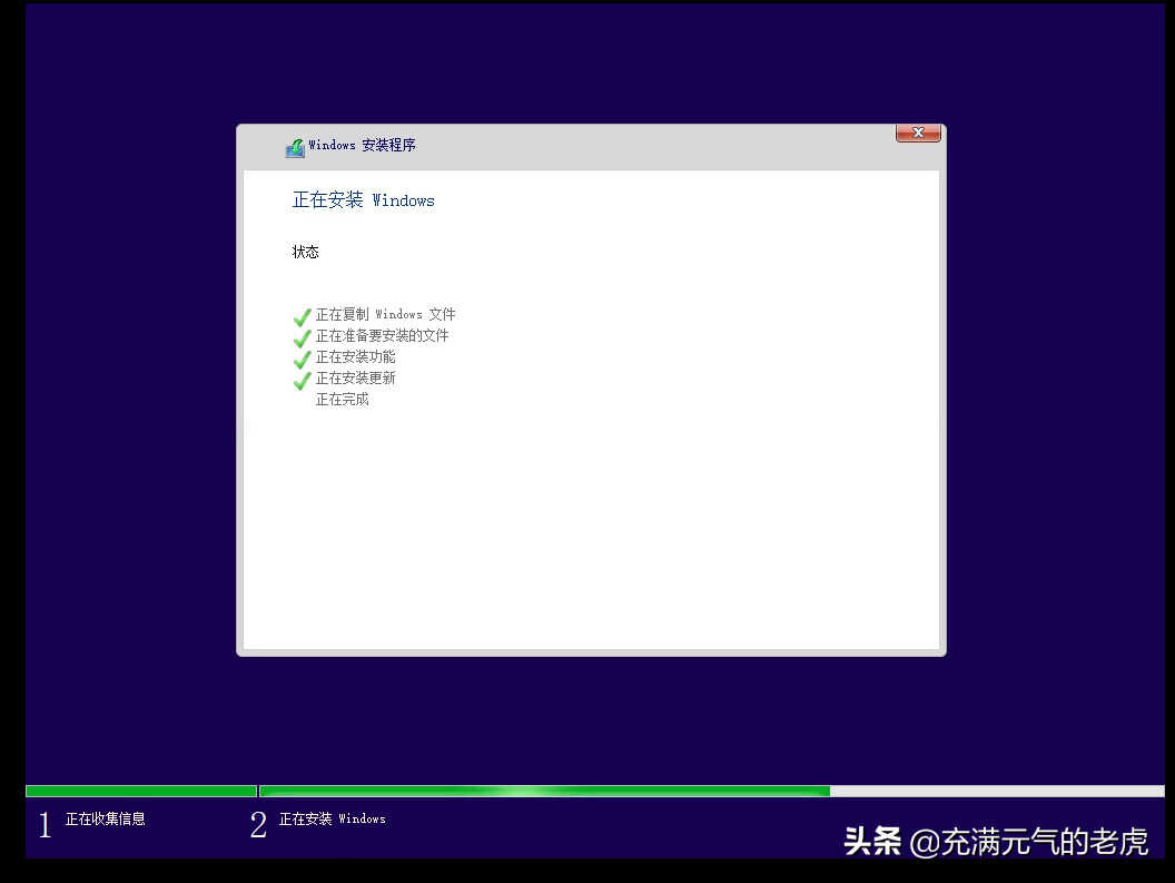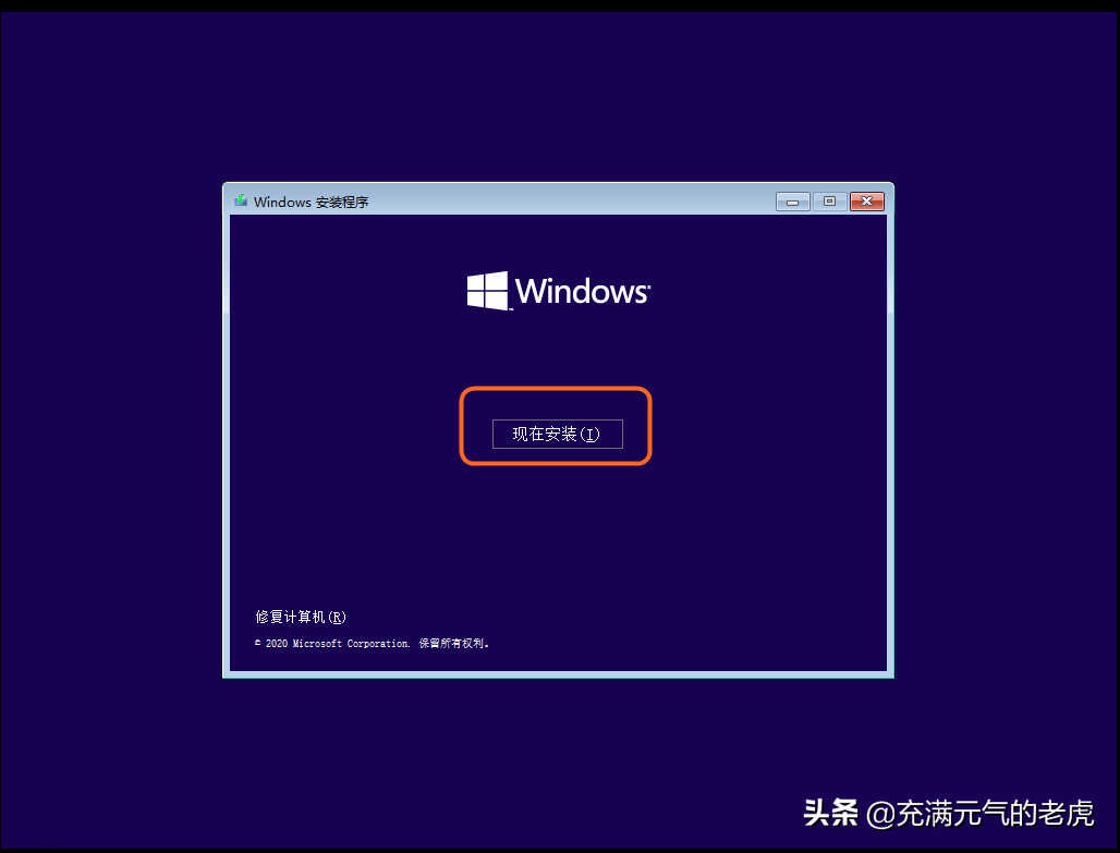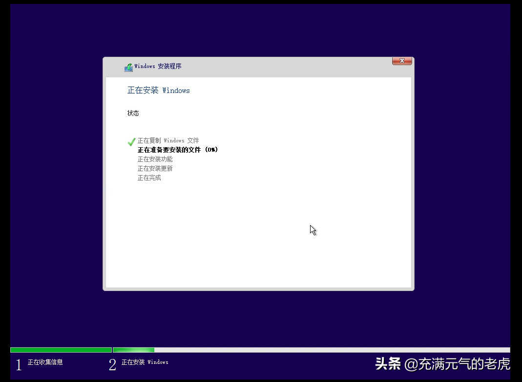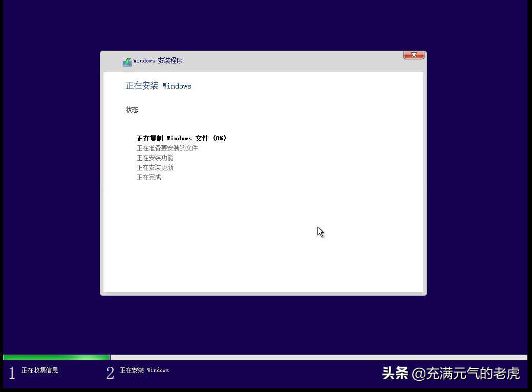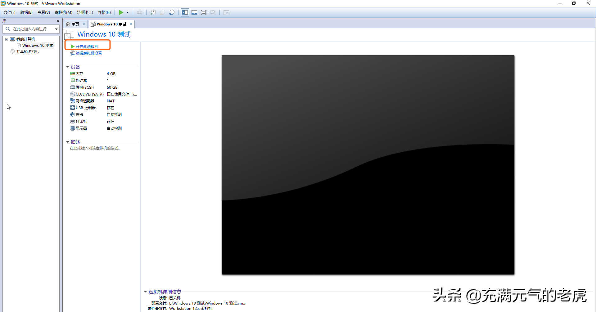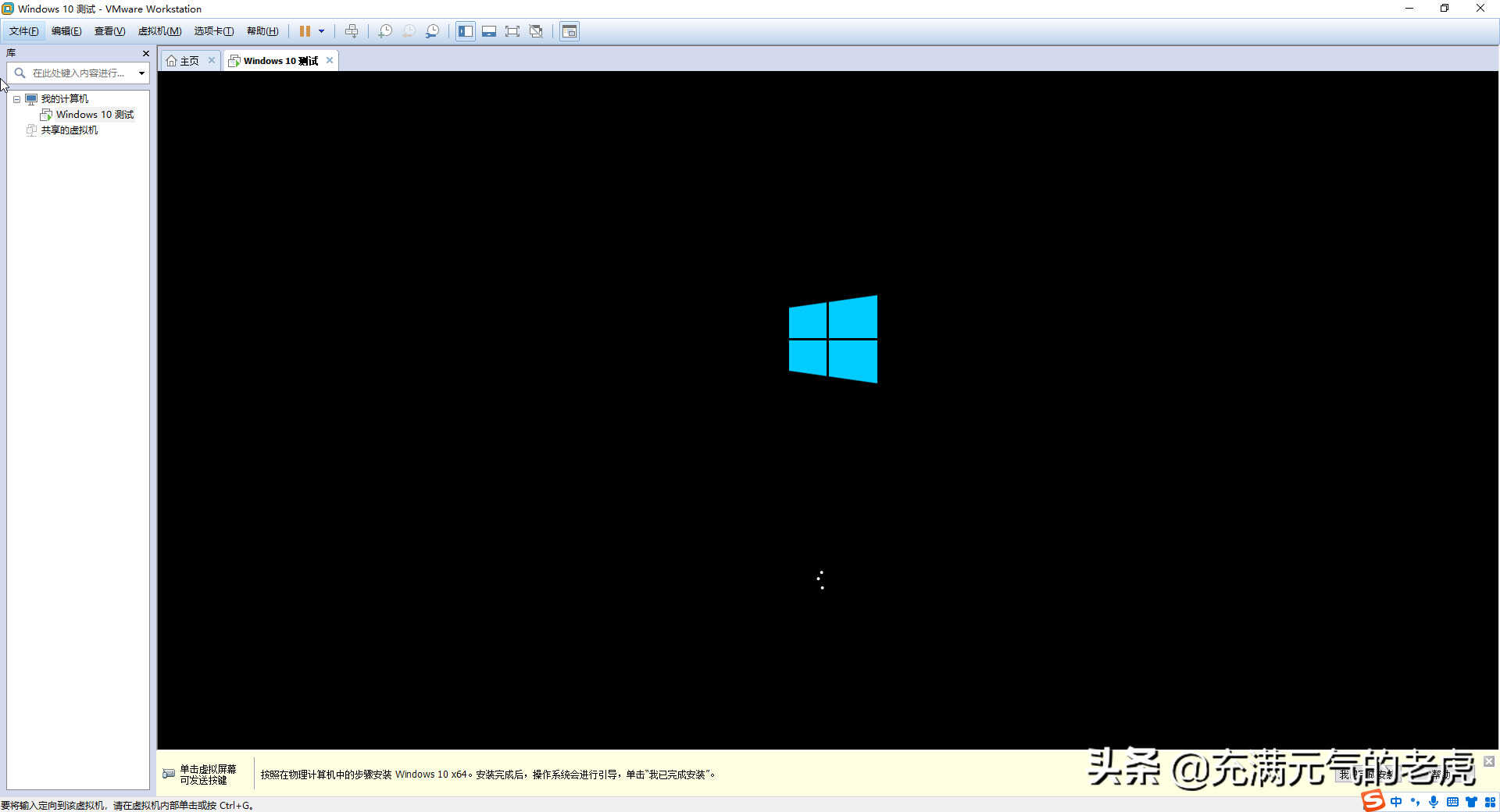 第八步:点击左上角的开启次虚拟机,windows10就自动开始安装了