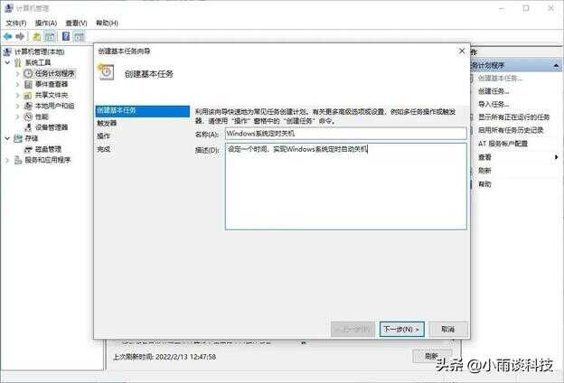 根据Windows系统的任务向导,输入任务的名称和描述。