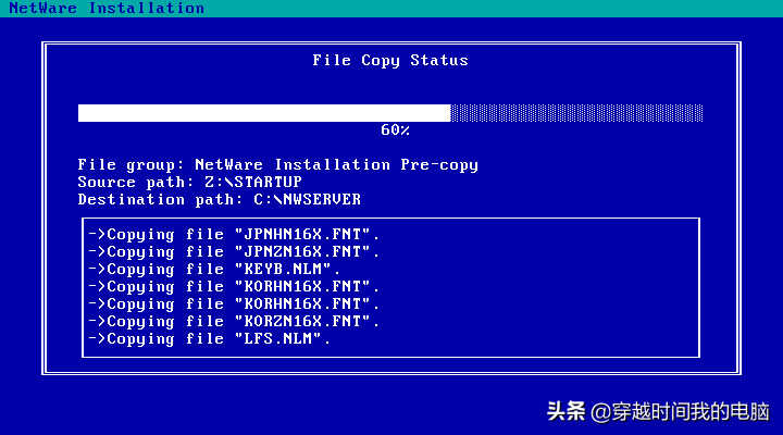 在新的文件复制阶段开始之后,文件复制的目的地就变成Netware分区中的SYS:了