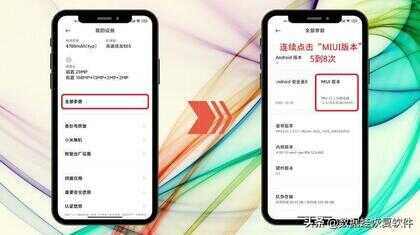 第2步:进入之后,在下方找到“全部参数”的选项,点进去,可以看到你的小米手机所有的配置、版本等信息都在这里,我们找到“MIUI版本”,随后连续点击它5到8次,知道弹出一个开发者模式成功开启的小提示;