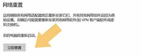 点击进入“网络重置”选项,在弹出的界面里选择“立即重置”。如下图: