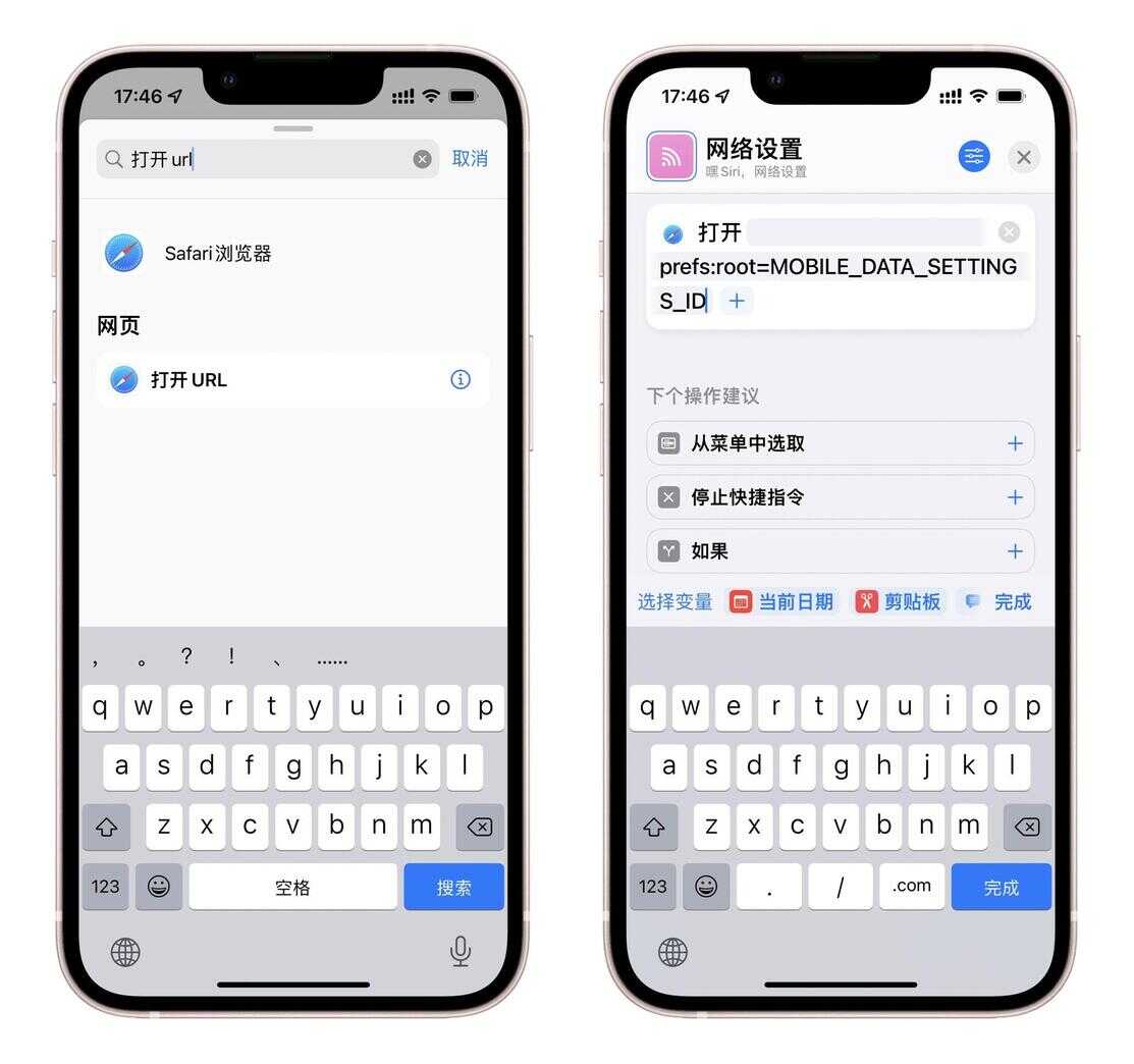 创建一个快捷指令,添加“打开url”的操作,再将对应的url链接添加粘贴上去,最后关闭“运行前提示”即可。