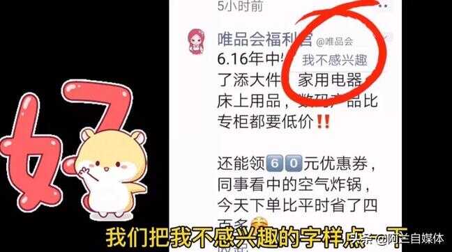 下面再给大家分享一下怎么来减少朋友圈的广告跟踪,比如说我们在朋友圈经常看到这样的广告,怎么关闭呢?我们把右方的向下的箭头点一下,立刻就出来了“我不感兴趣”的字样,我们把“我不感兴趣”的字样点一下,这个广告立刻就消失啦。