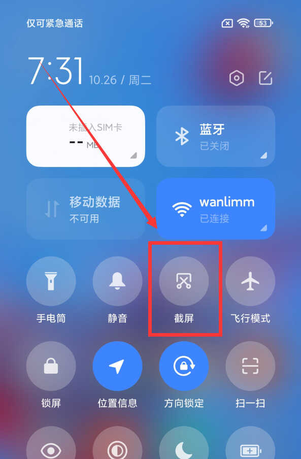 基本上现在的智能手机都会带有这种截屏方式,就算是手机新手,也都知道使用这种截屏方法。在自己想要截屏的时候,从手机屏幕的顶部向下拉,拉出通知栏,然后点击通知栏里的“截屏”按钮(如下图),就可以快速截取屏幕了。