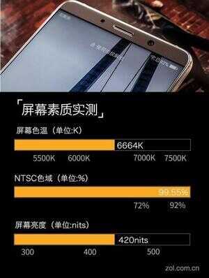 可以看到,HUAWEI Mate 10 保时捷设计的亮度最高能够达到420nits,虽然比起LCD屏幕的亮度突出表现还略有不够,不过满足日常的正常使用还是没有任何问题的。在屏幕色温和色域表现上,HUAWEI Mate 10 保时捷设计拥有两种不同的色彩模式,选择标准模式的HUAWEI Mate 10 保时捷设计的色温和色域表现都十分精准,分别为6664K的色温和73%的NTSC色域。
