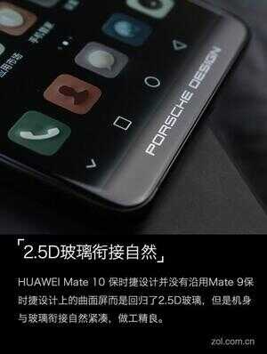 Mate10 保时捷版的除了配置是几个版本之中最高之外,在外观的辨识度上也很高。一是独有的钻石黑配色,二是位于屏幕下方醒目的的“Porsche Design(保时捷设计)”LOGO,而"HUAWEI"自家的LOGO则只保留在了机身背部。