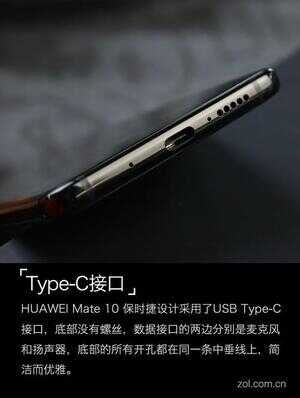 出于防水防尘的考虑,拥有IP67级别防水防尘的HUAWEI Mate 10 保时捷版取消了3.5mm耳机接口,机身顶部只有降噪麦克和红外模块,底部则是USB Type-C接口以及麦克风和扬声器,整机外部没有一颗螺丝。
