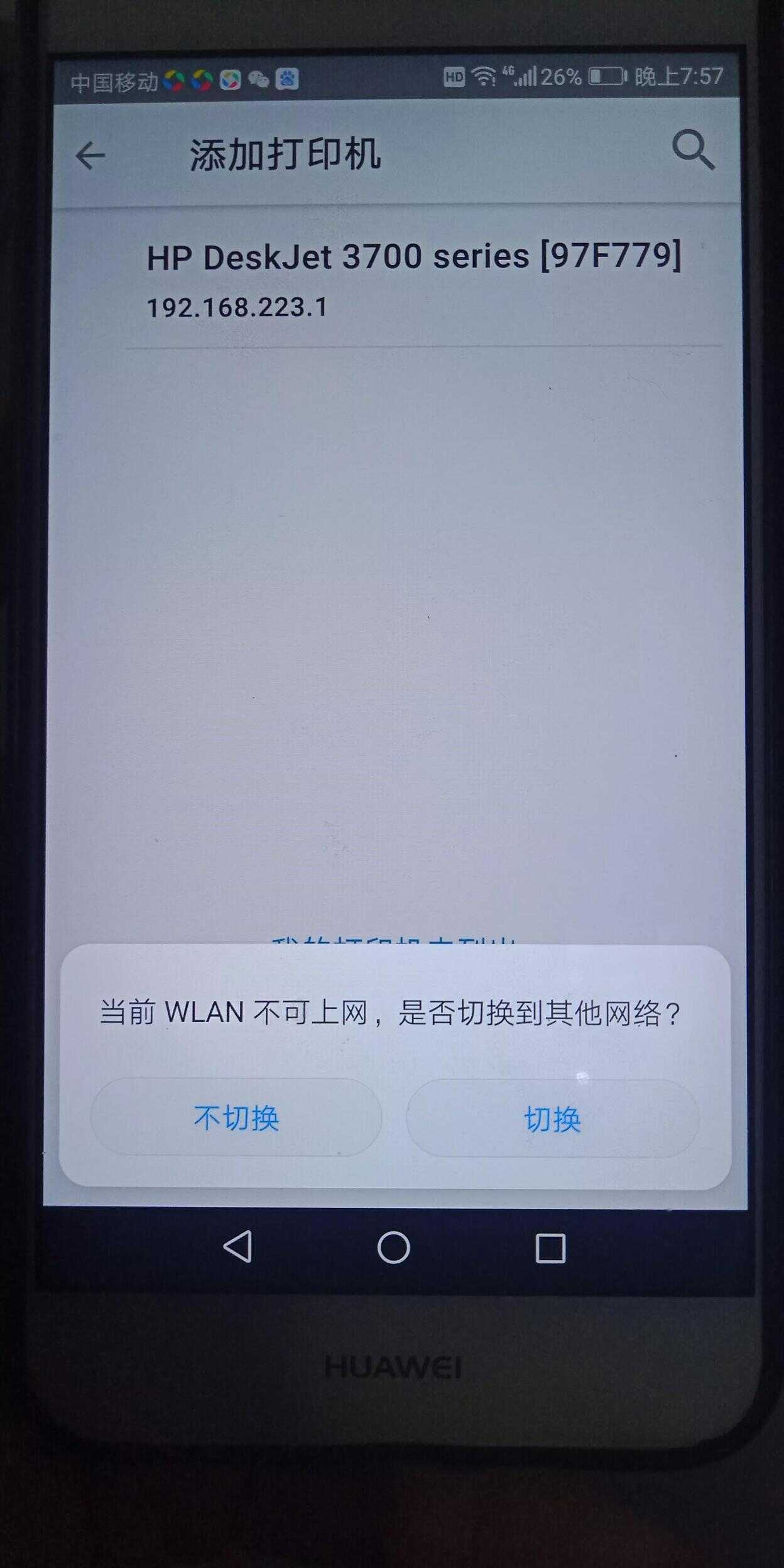 4.连上打印机的WiFi后,会提示无法上网,会问你要不要切换可以上网的网络,选不同意。