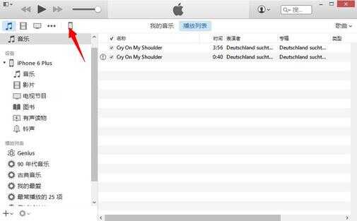 相同的方法,用数据线连接iPhone与电脑上的iTunes,进入iTunes首页,点击页面上方的iPhone设备图标