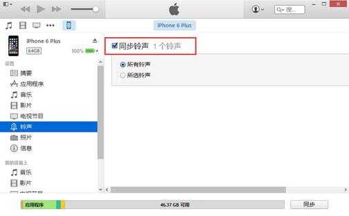 在页面的右侧,我们可以看到此时同步铃声是出于开启状态,我们可以将其前面的√去掉