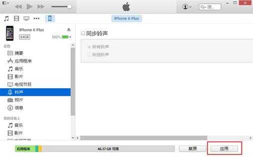 返回到原来的铃声设置页面,点击页面右下角的同步按钮,进行同步设置,再回到iPhone手机上,依次打开设置→声音→电话铃声,可以看到原来的所有自定义铃声就全部被删除掉了