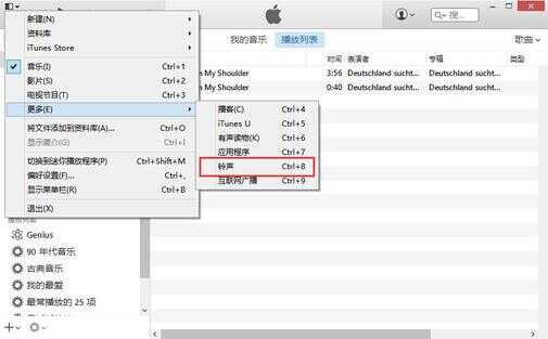 这时,我们将可以在文件的下拉菜单中找到更多选项,在弹出的菜单中,选择铃声栏目