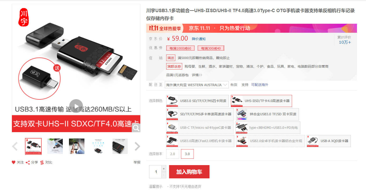 ▲最入门级的读卡器,建议购买川宇的C396,川宇作为专业读卡器品牌,质量上值得信赖,入门级的买买很不错。