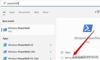 单击开始按钮,在搜索栏中键入“powershell”,然后单击“以管理员身份运行”。