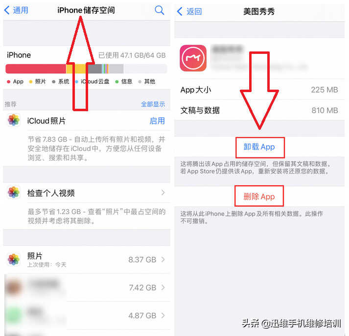 iPhone手机卸载和删除是两个不同的概念,如果不再需要某个App,一般都会直接卸载,但这样会残留很多数据,保存在iPhone中且被归为“其他”,而删除则是包括软件和数据在内一并删除。