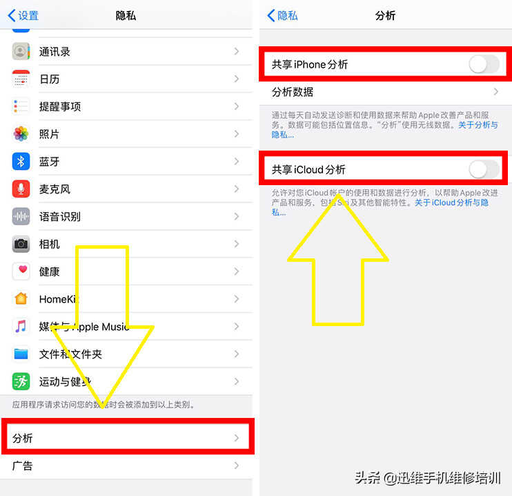 具体操作:设置--隐私--分析--关闭【共享iPhone分析】和【共享iCloud分析】。