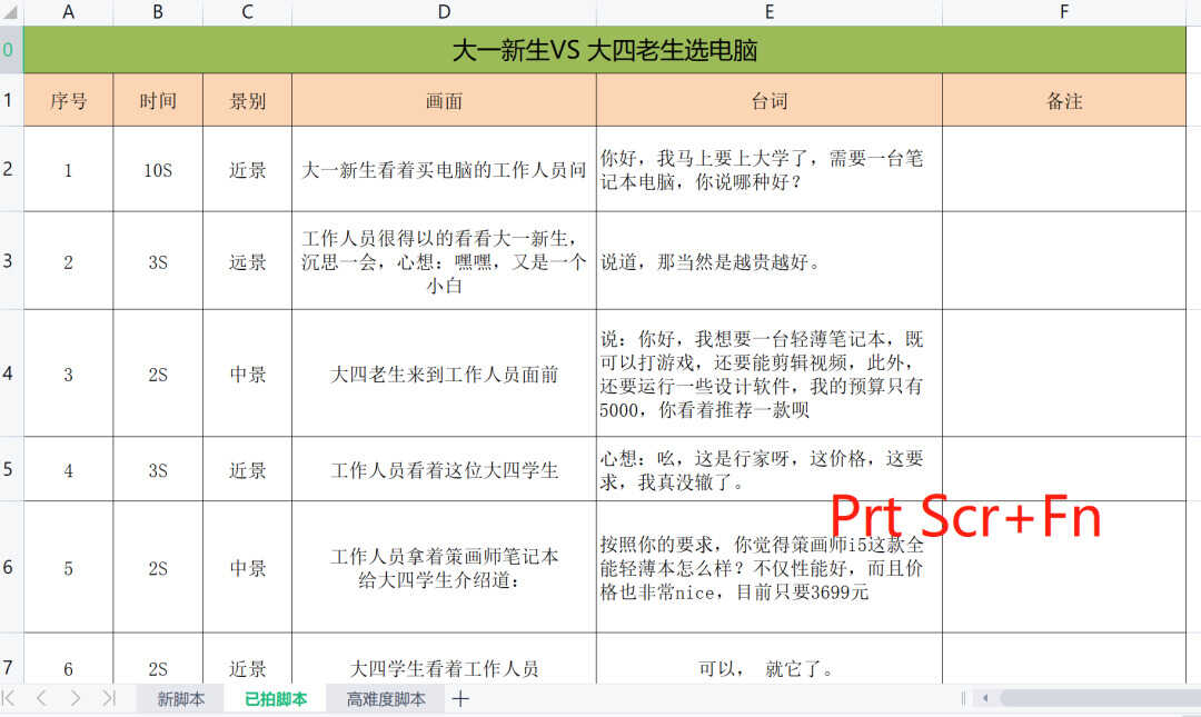 如下图,我正在应用Excel软件进行脚本撰写,那么截图就是当前Excel软件的全屏截图了(包含电脑菜单栏等)。
