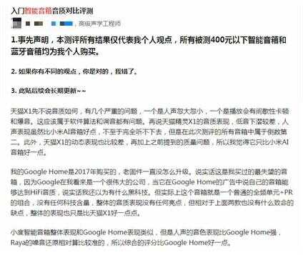 从前消费者购买商品的信息渠道是单一的,大多数情况下我们只能相信商家的描述。而互联网发展到现今阶段,在网上早已没有秘密,强大的营销在网友真实的评价面前很快就会原形毕露,让我们来综合看看各大平台上的网友是如何评价智能音箱。