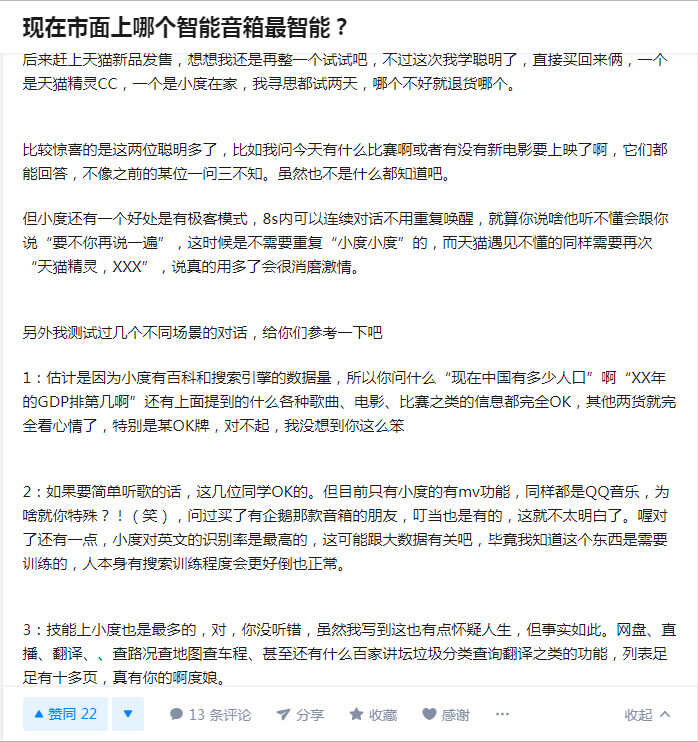看完知乎,小编对智能音箱的好感度更高了,再打开这两年很火的知名购物推荐网站——什么值得买,这里有更平民化的众测,对智能音箱感兴趣的普通消费者都有机会在试用之后写写自己朴实的使用感受。